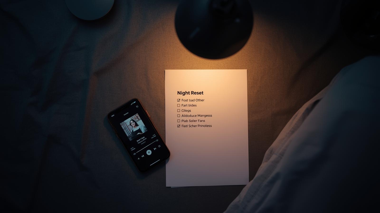A short calming audio and simple night routine checklist designed to help busy minds slow down and unwind before bed.